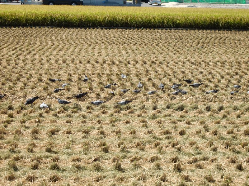 かなりの数のハトがお米をついばんでいるのでしょうか。f(^_^;)