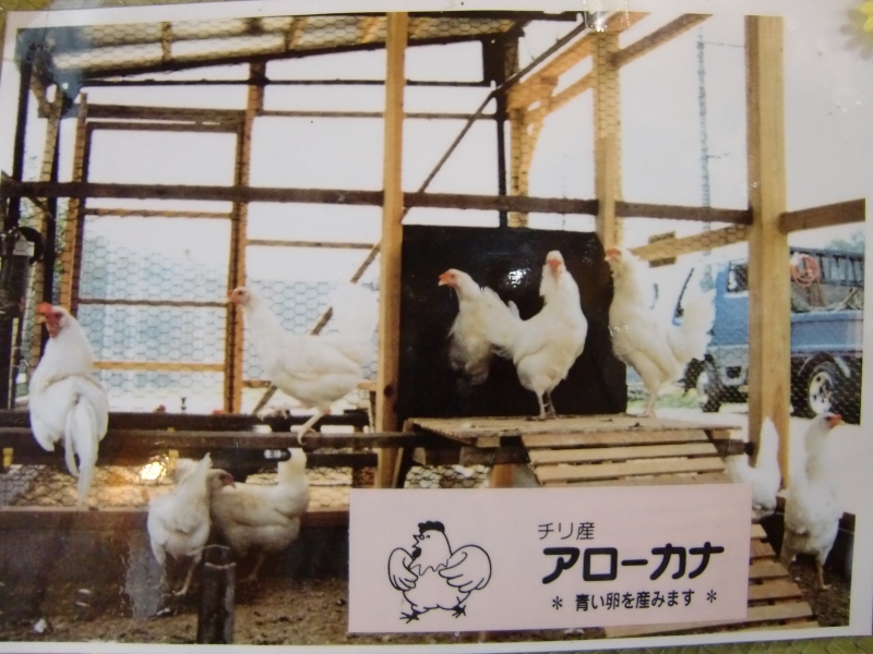 これは青い殻のたまごで、アローカナという品種の鳥から生まれます。