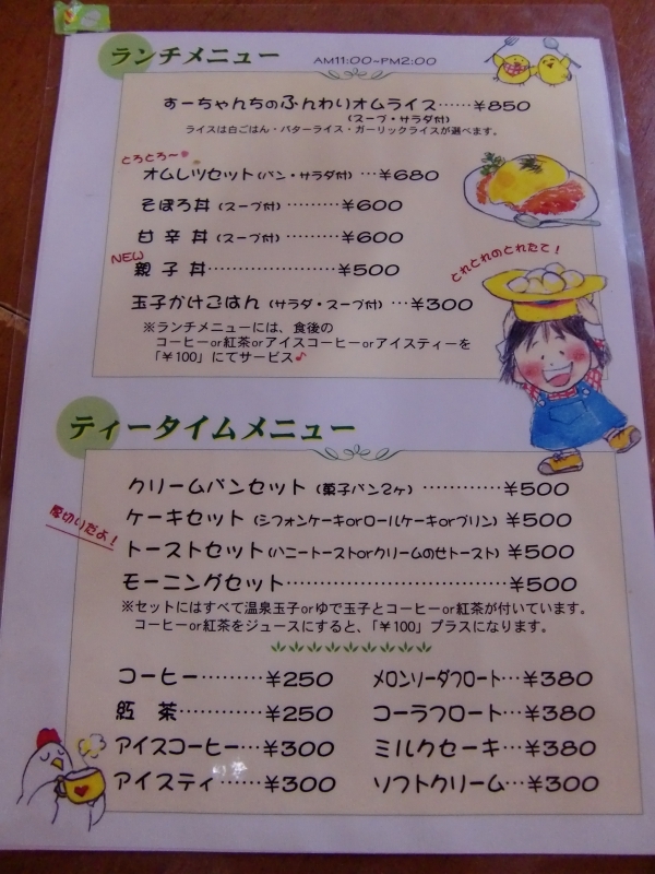 ここでは「たまごかけごはん」や「オムライス」「オムレツ」などが食べられ、